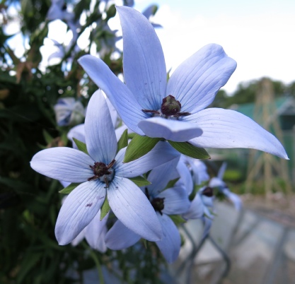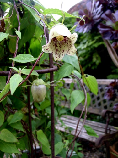 Although over the years we have thought we were growing it, every time except once it turned out to be C.clematidea. The one time that we did flower it we managed to plant it in exactly the wrong place and lost it after one season! It is an attractive little scrambling plant with small leaves and lovely straight sided bells, rather reminiscent of a bluebell in shape, with dark maroon markings internally and pale maroon externally.