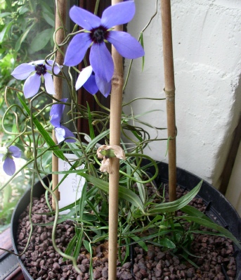 In our experience this can be a quite variable species but hardly surprising considering its vast range. This is a non climber but will twine on low supports up to a height of 3′ flowering around mid June.