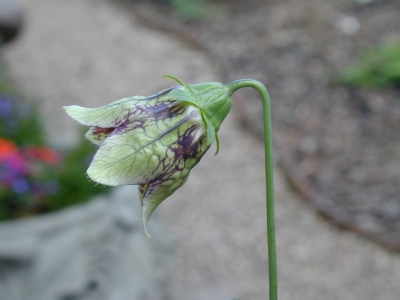Flowering here in a Midlands garden, C.meleagris is very closely related to C.subscaposa and just as striking. In China the latter grows in Sichuan and Yunnan but C.meleagris is only found in N.W. Yunnan on grassy slopes or open woods. The patterning on the outside of the petals seems to be much finer than its cousin’s and the tall stem (20-90cms) is never branched.